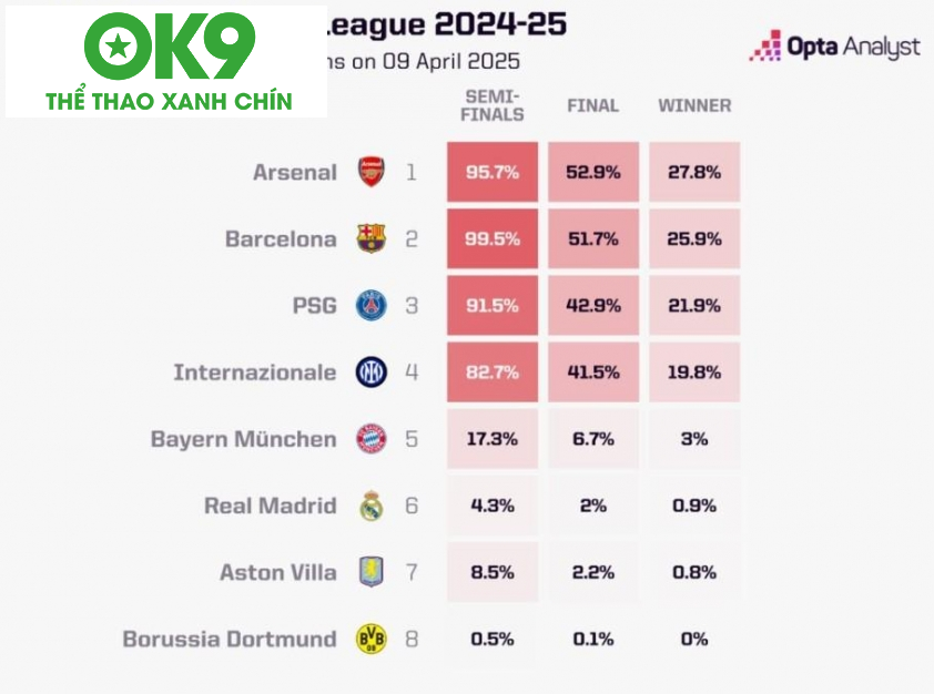 Nếu như Arsenal đã có màn trình diễn thuyết phục khi loại bỏ Real Madrid ở tứ kết, thì PSG cũng không hề kém cạnh với chiến thắng kịch tính trước Aston Villa. Đoàn quân của HLV Luis Enrique đã chứng minh được bản lĩnh và sức mạnh của mình để tiến vào vòng bán kết với tổng tỷ số 5-4 sau hai lượt trận.